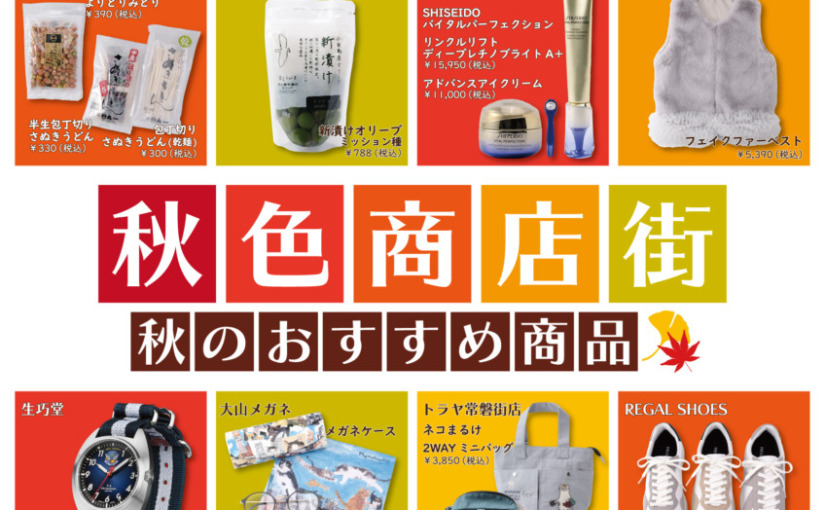 秋色に染まる商店街のシーズンキャンペーン「秋色商店街」。 >>秋商品&サービス特集 >>秋グルメ特集 ポスターをクリックすると各特集&キャンペーンの詳細をご確認頂けます。 商品&サービス特集 秋グ … 続きを読む 秋色商店街